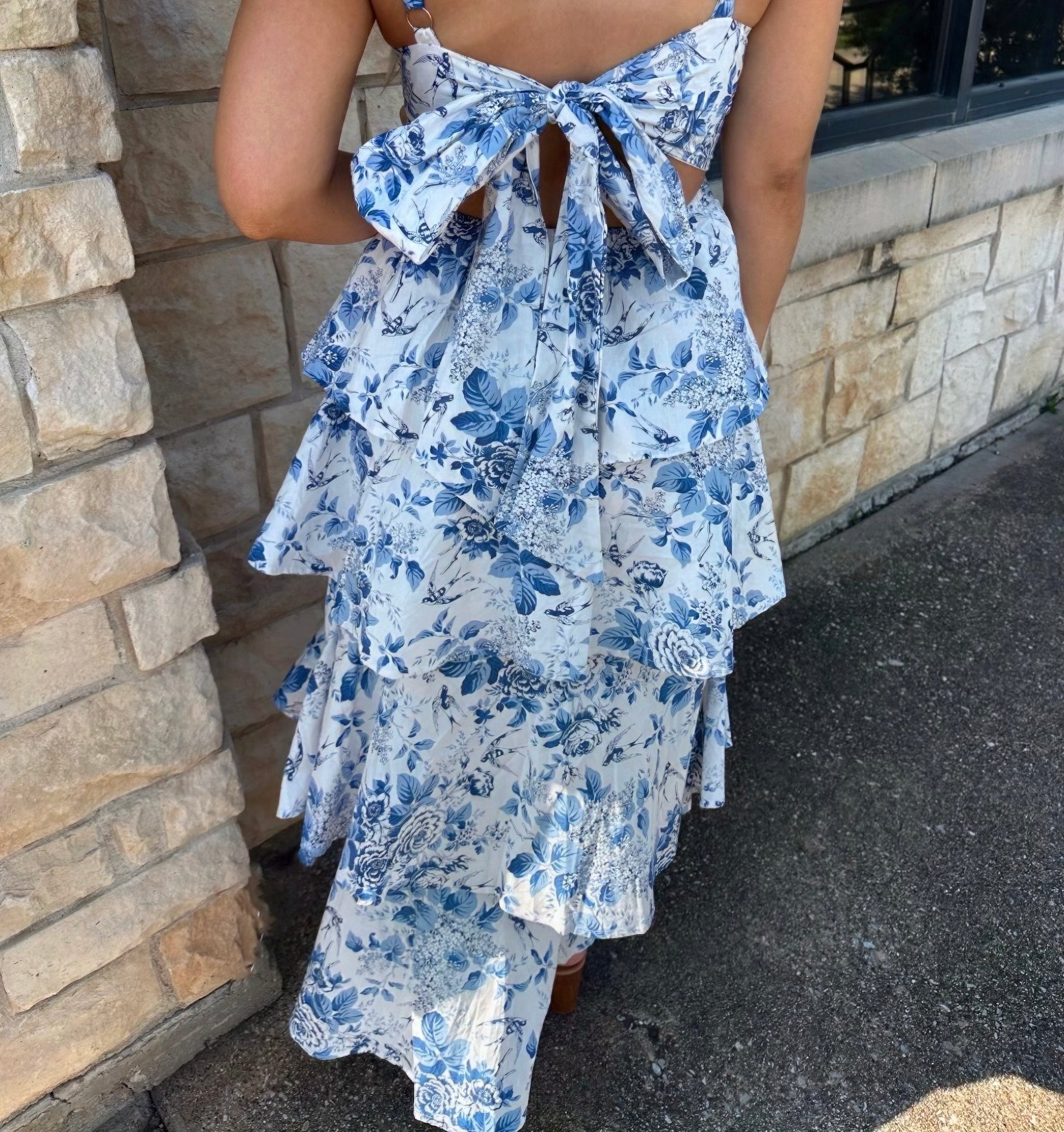 A pretty floral maxi dress with a flowy fit and a cute bow at the back. Easy, breezy, and perfect for any day out!